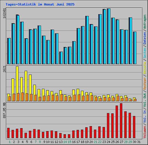 | Tages-Statistik im Monat Juni 2025 | ||||||||||||||||